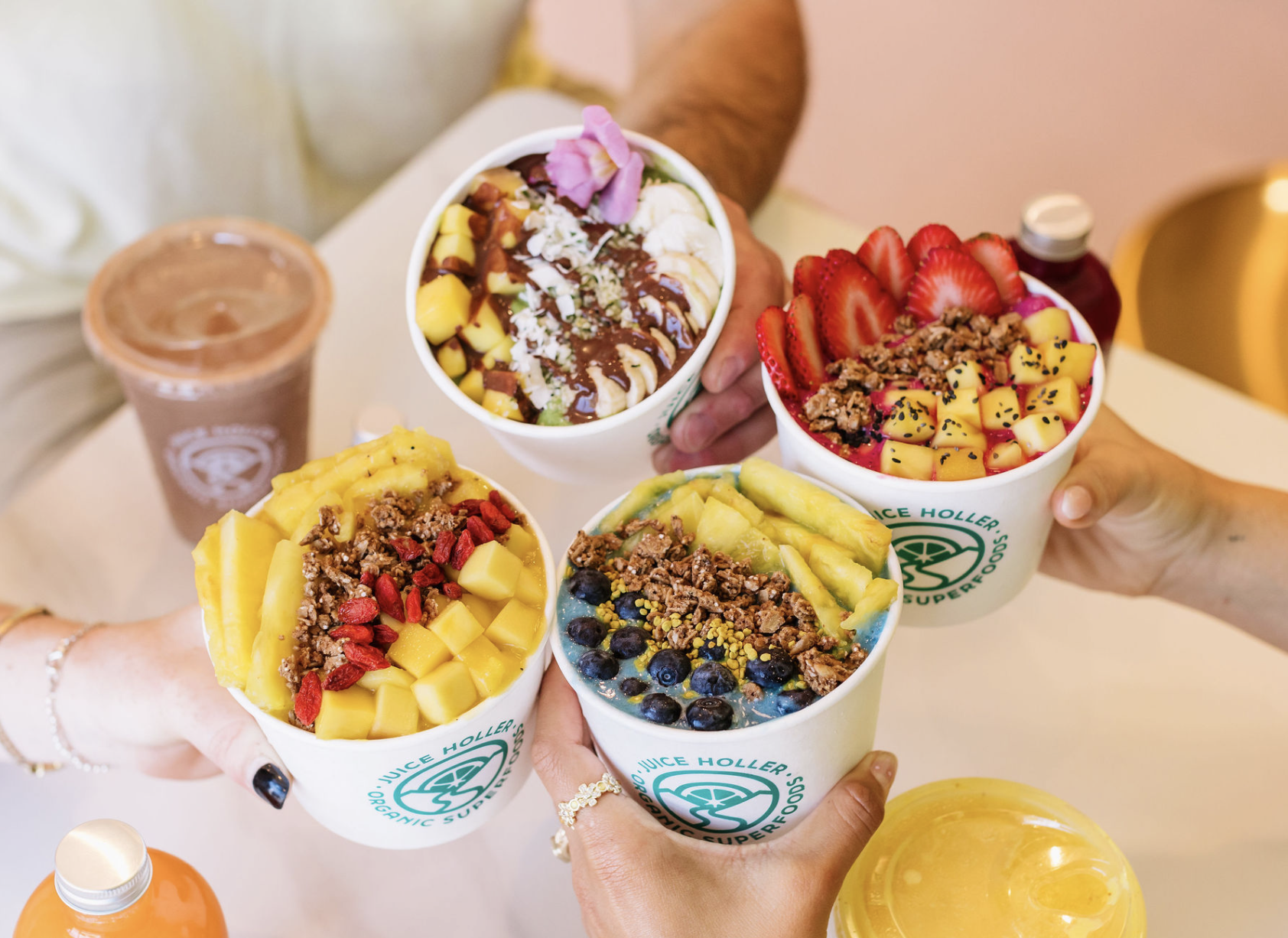 Juice Holler is a daytime wellness hub in the heart of Encinitas, blending Appalachian-inspired community spirit with a wholesome, nutrient-forward menu. Founded by local resident Kelly Sergott, the concept offers organic cold-pressed juices, superfood smoothies, functional lattes, and nourishing grab-and-go fare—all free from refined sugars and seed oils. Whether grabbing a post-surf bite or settling in for a remote work session at our communal tables, Juice Holler offers a neighborhood “third space” centered on connection and vitality.